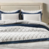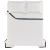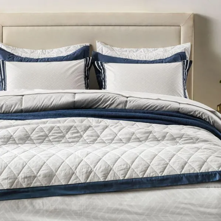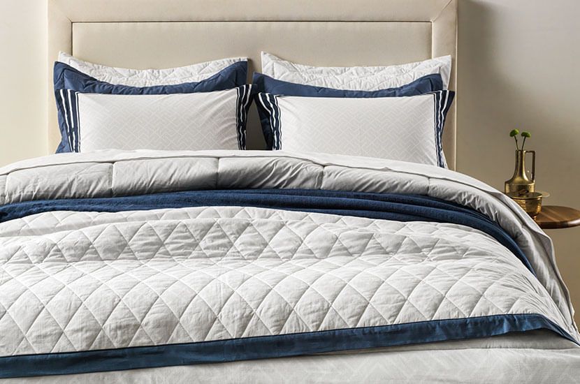 A Colcha Barcelos King com medidas 2,90m x 2,60m é a combinação perfeita de sofisticação e conforto para transformar seu quarto. Confeccionada em 100% algodão e 200 fios, ela oferece toque macio e sensação de frescor, além de ser hipoalergênica e resistente a bolinhas, garantindo durabilidade e bem-estar. A colcha dupla face com cantos quadrados proporciona versatilidade e elegância, enquanto os porta-travesseiros 50cm x 70cm com três abas de 5 cm, completam o conjunto com um acabamento refinado. Com suas cores branca e azul, o design atemporal da estampa traz tranquilidade e harmonia ao ambiente, sendo fácil de coordenar com o edredom e jogo de cama da mesma linha.