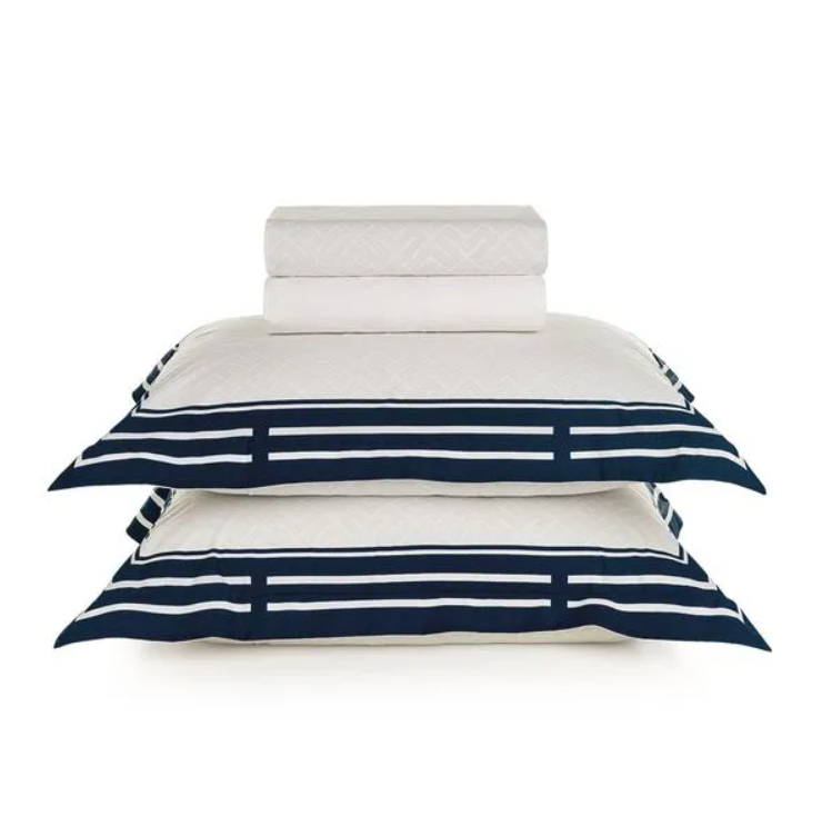 Transforme sua cama em um refúgio de conforto e elegância com o Jogo de Cama Barcelos Queen. Confeccionado em 100% algodão com 200 fios, oferece um toque encorpado e altamente respirável, ideal para noites de sono tranquilas. A tecnologia antipilling e o acabamento hipoalergênico garantem durabilidade e cuidado com a pele. O conjunto inclui um sobre lençol estampado de 2,40m x 2,50m com dobra feita e bainha comum, um lençol com elástico 1,58m x 1,98m x 40cm e duas fronhas 50cm x 70cm com quatro abas de 4 cm com estampa dimensionada formando uma moldura que conferem sofisticação. A composição nas cores branca e azul adiciona um toque sereno e clássico ao ambiente. Combine com o edredom ou a colcha da linha Barcelos para uma cama que acolhe e encanta.