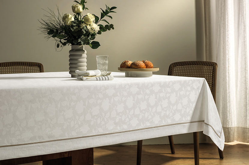 Toalha de Mesa Retangular 12 Lugares Antoni Branco/Bege