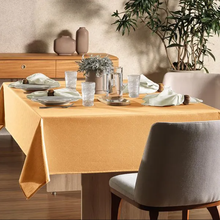 Toalha de Mesa Retangular 8 Lugares Jacquard Caetano Mel